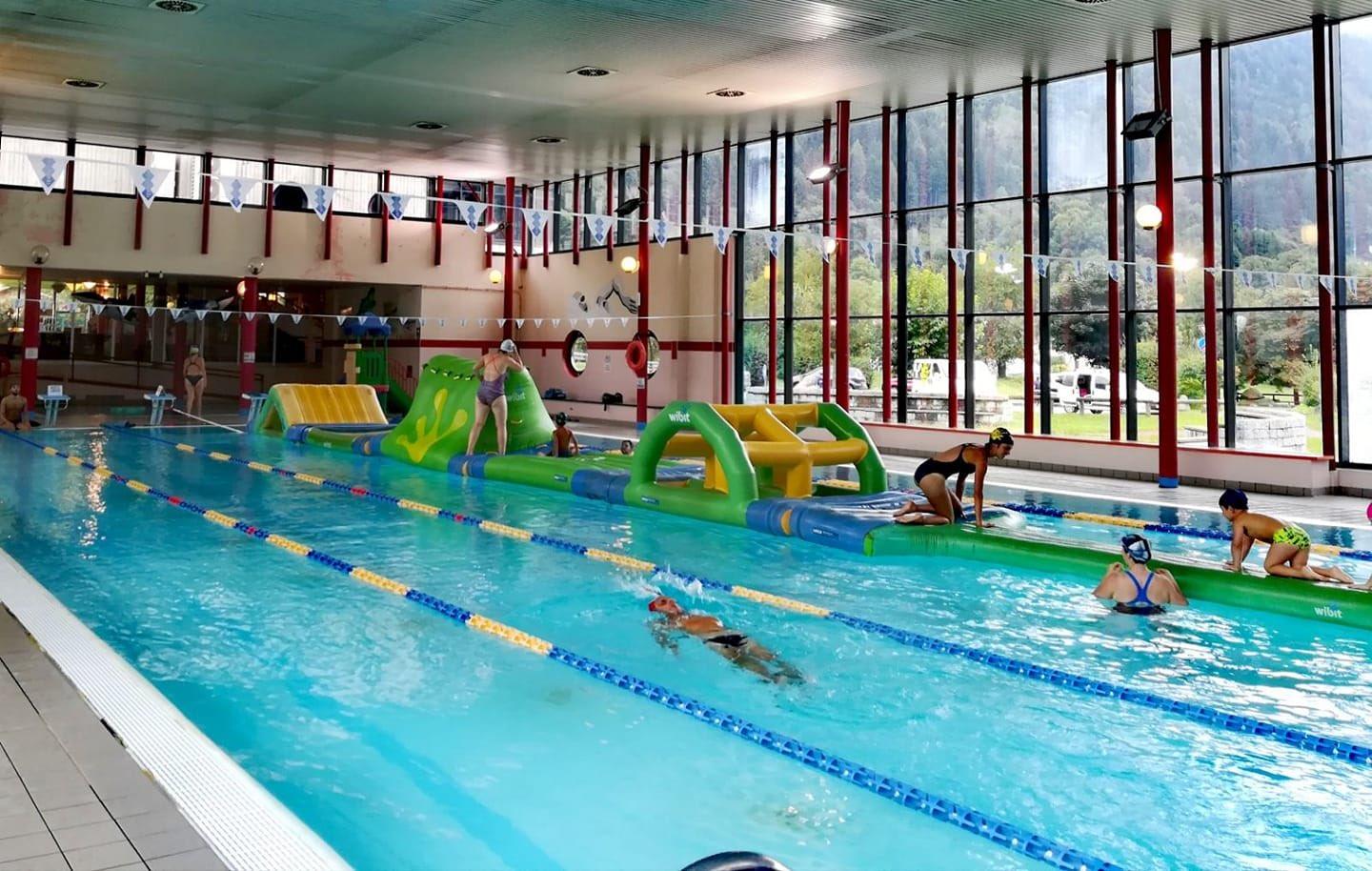 Due sono le vasche al coperto: una regolamentare a sei corsie, profonda da 120 a 180 centimetri, a 29°, e una per bimbi piccoli 10×4, profonda 60 centimetri, a 31°.